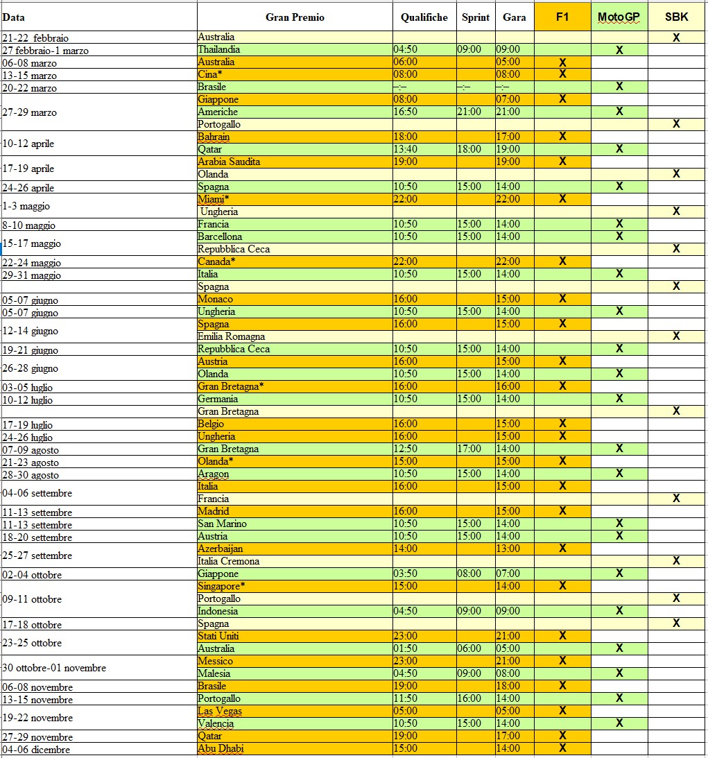 Calendario F1 MotoGP SBK